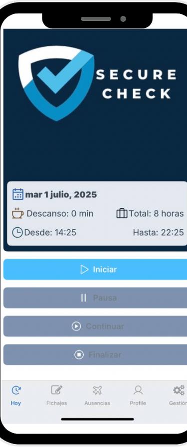 Fichaje rápido desde navegador, iOS y Android en segundos.